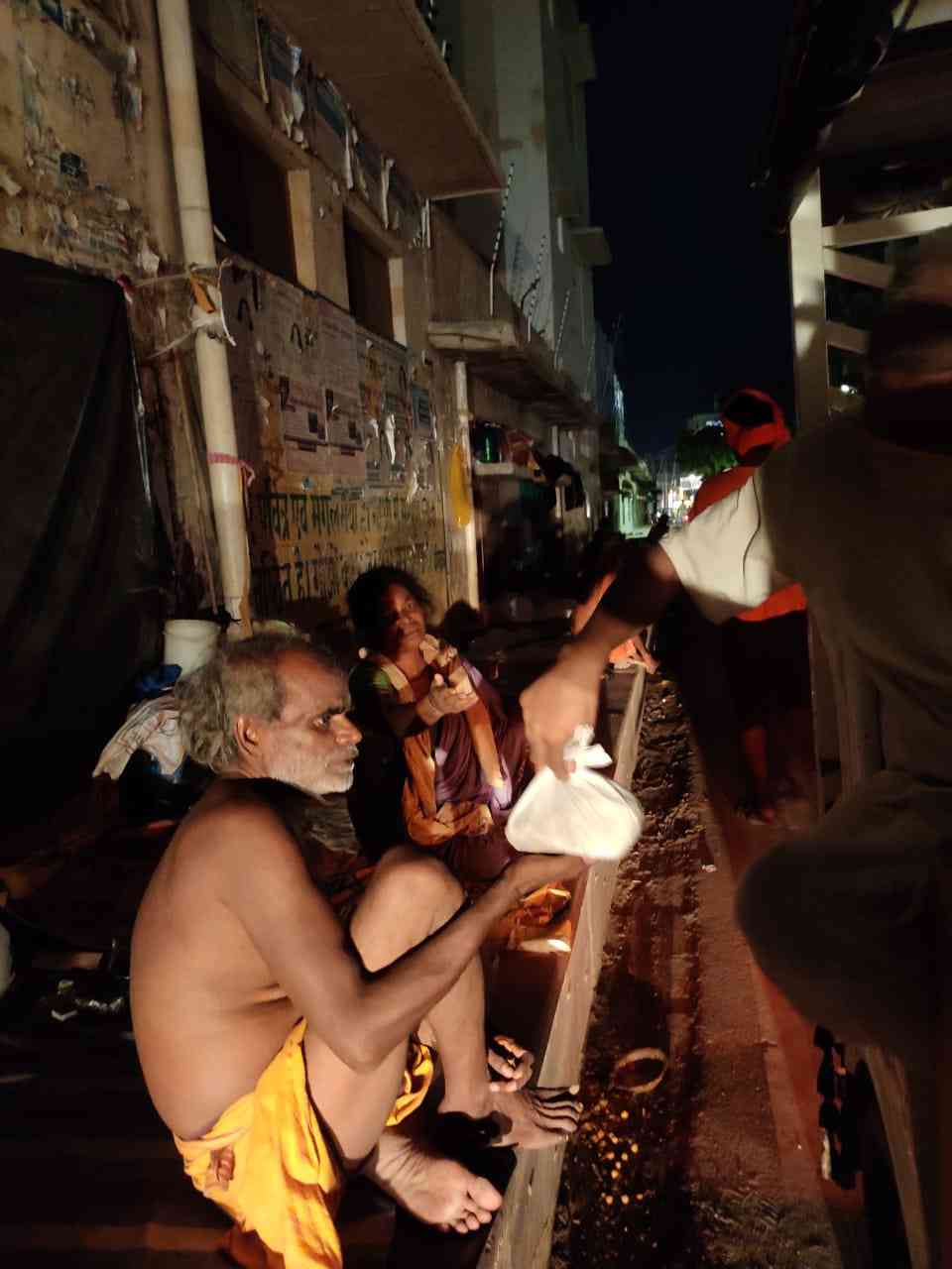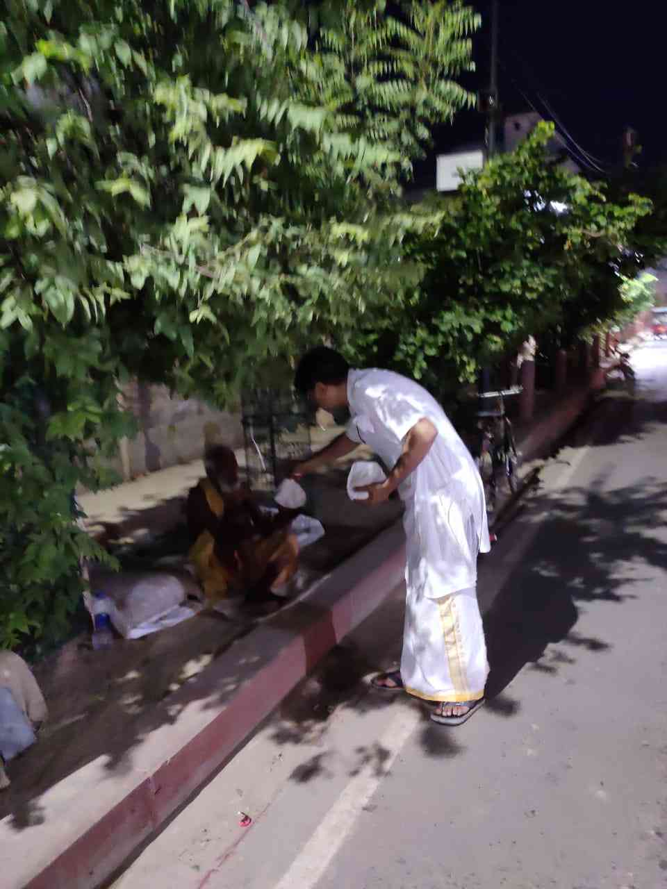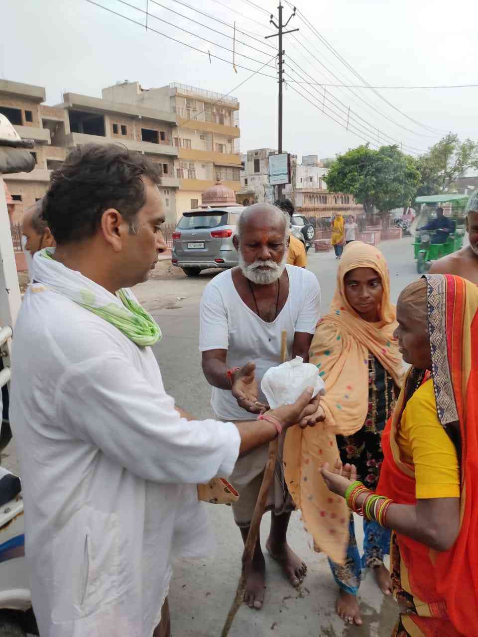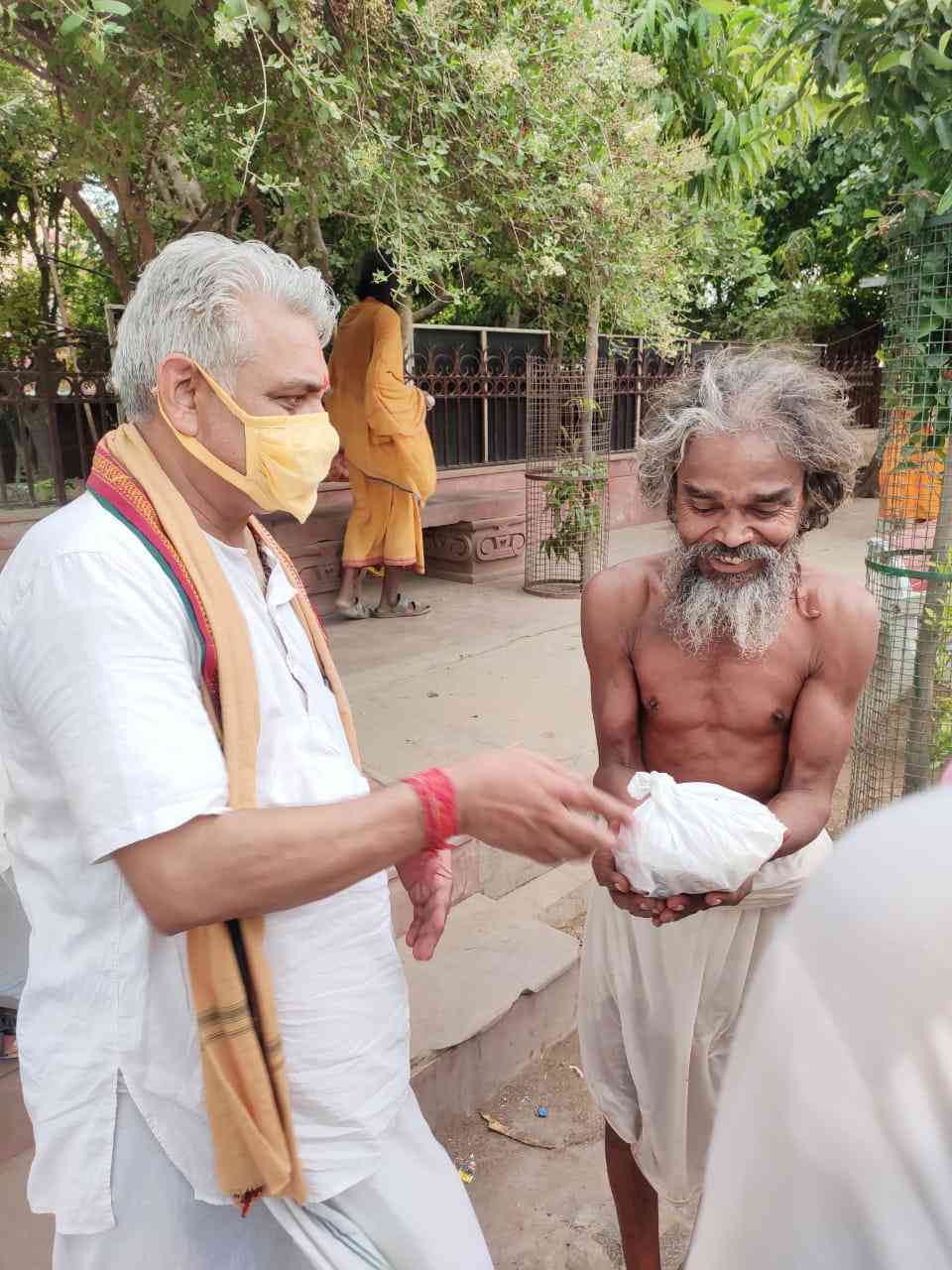 VKST volunteers distributing foodstuffs on the Parikrama Path of Sri Vrindavan July 2021