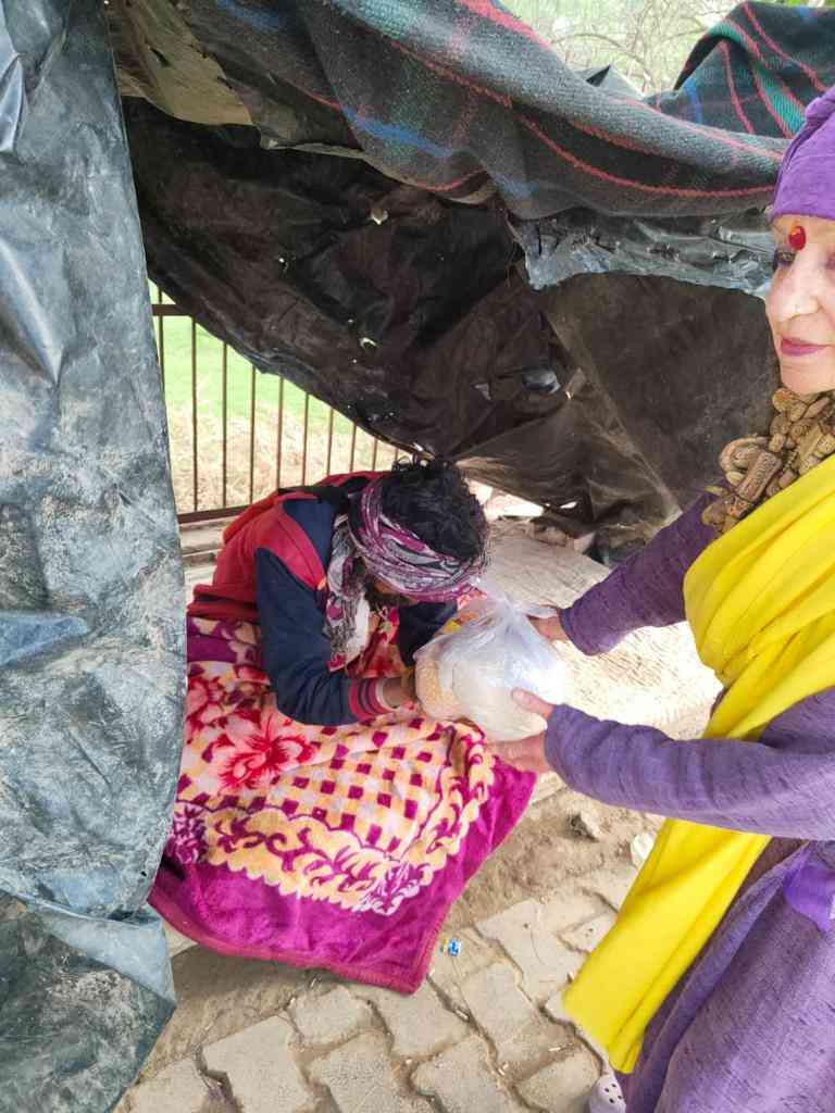 VKST takes food supplies out on the streets of Sri Vrindavan December 2021