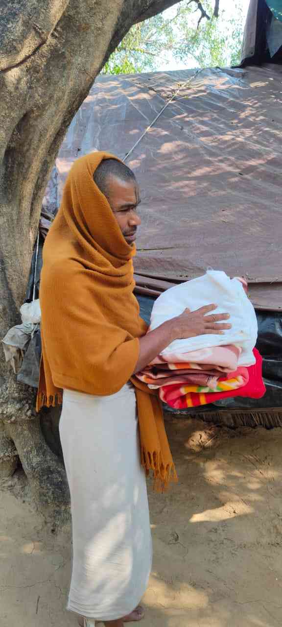 HUT DWELLING SAINTS IN FOREST RECEIVE SUPPLIES BLANKETS, SPECS AND FRUIT