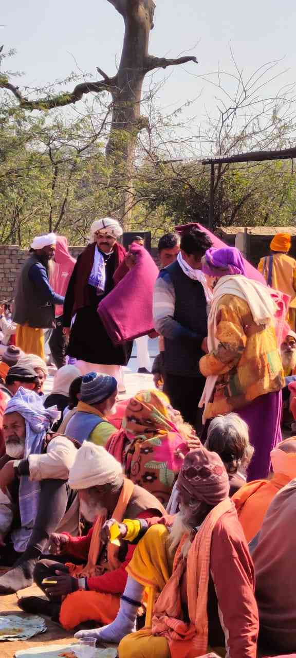 Blankets to a mass feed event on Sri Giriraj Parikrama