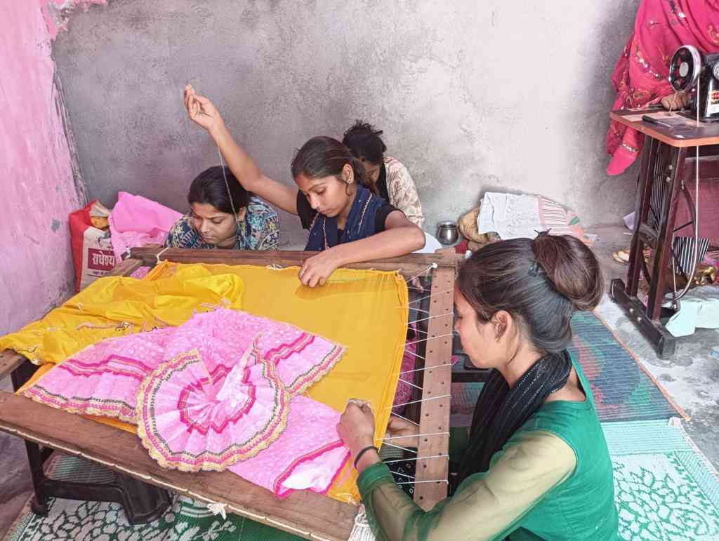 Setting up the Sriji sewing centre for girls in Varsanaji