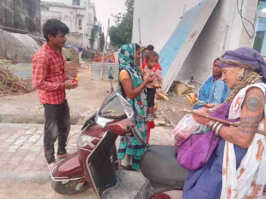 Fruit distribution to hut dwellers under the flyover Vrindavan August 2023