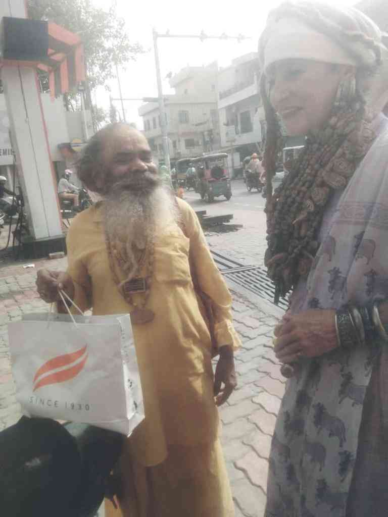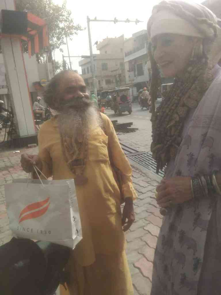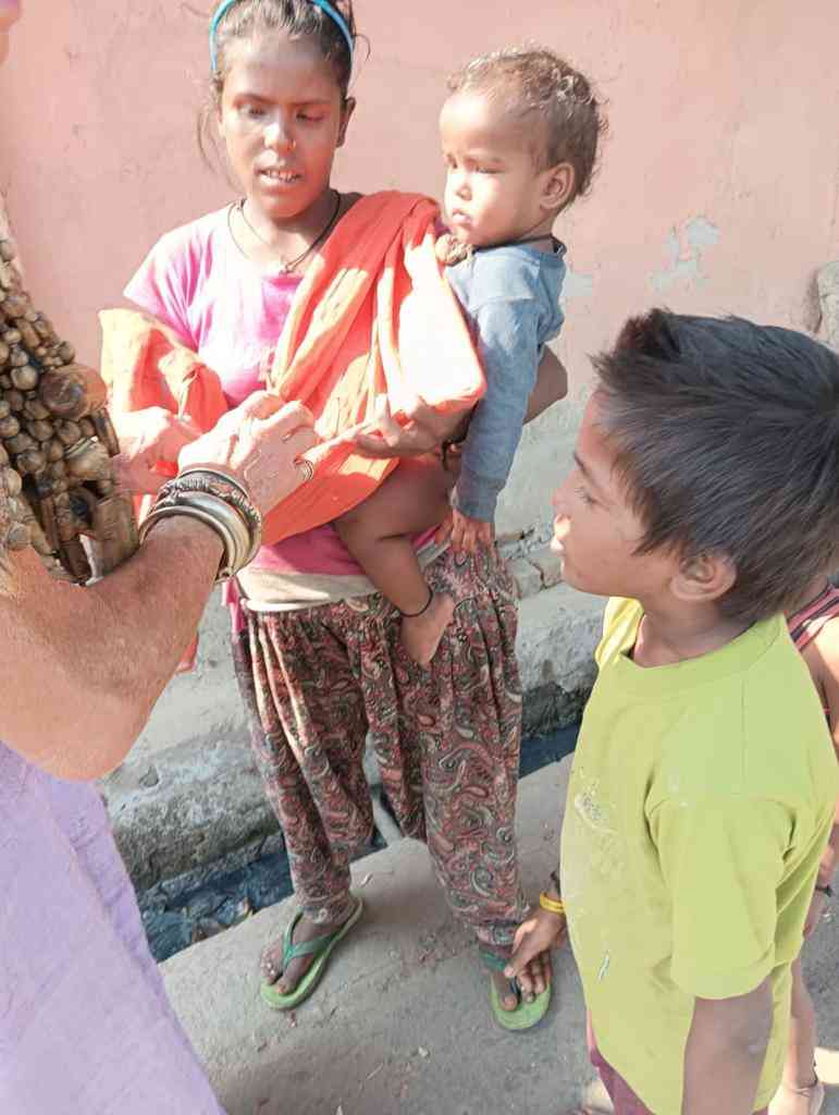 Todays visit to the Leprosy mission This very young mother waits round the corner for us to come out! VKST activities and serve to the population of Sri Vrindavan: Herbal meds to this fruitarian saint Night time fruit to the itinerant labourers’ families Biscuits to the ladies sleeping rough Leprosy mission vegetables Supplies to the families in villages near Govardhan etc.