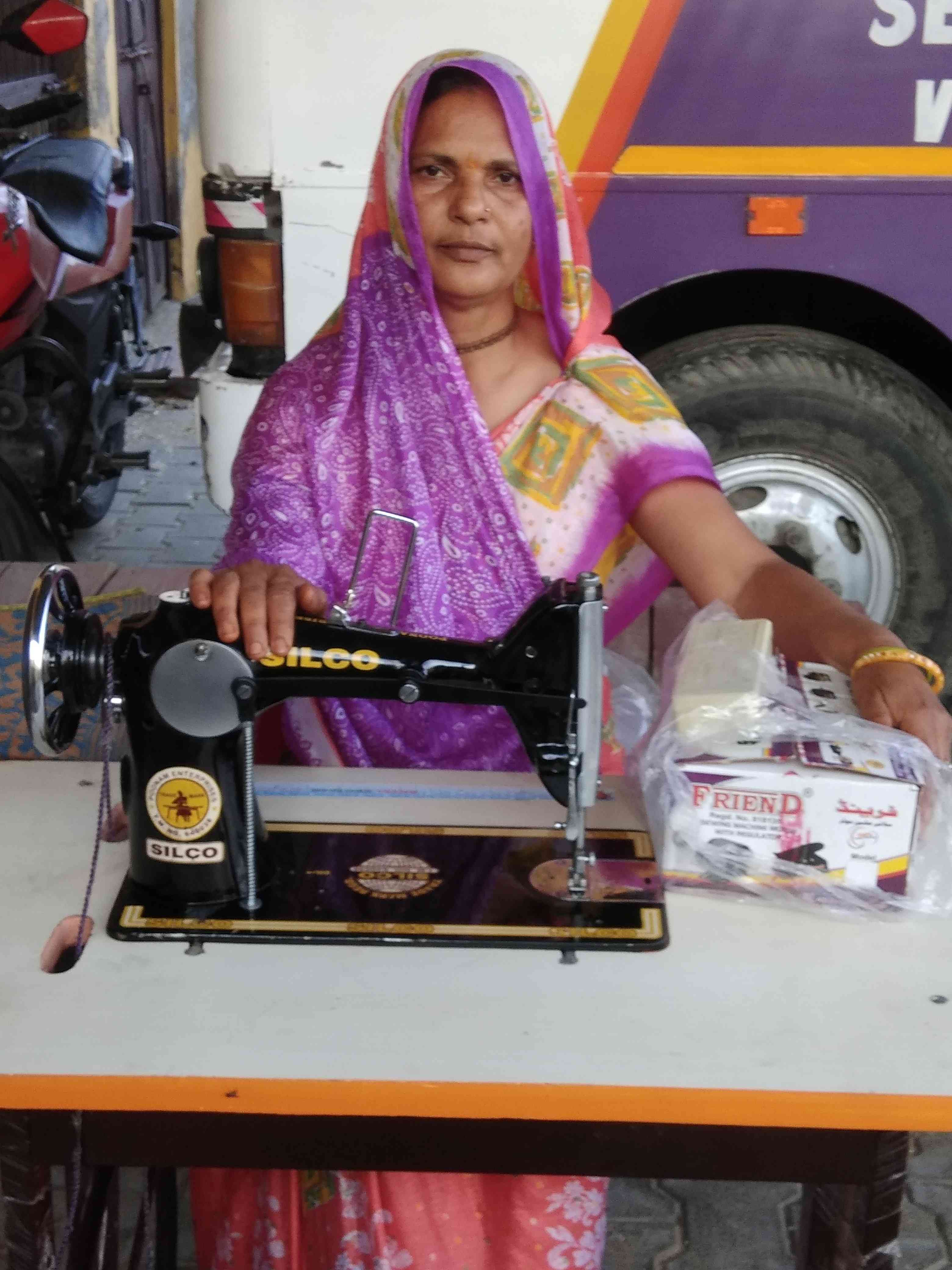 Another local lady, Manju, now has a sewing machine and sewing kit for making a living for self and family